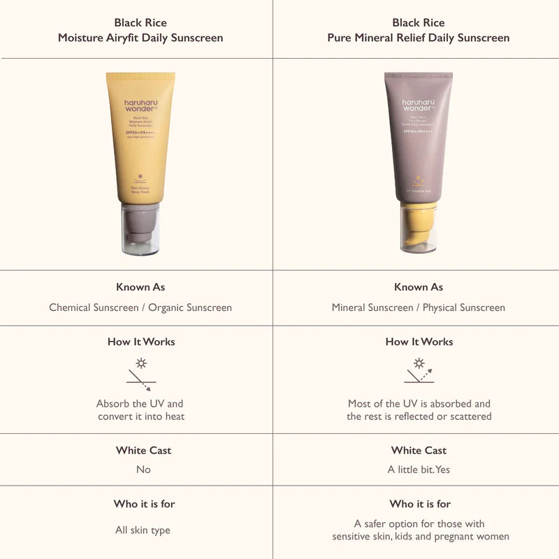 Gentle sunscreen with a satin finish, enriched with Rice Bran Oil infused with antioxidant-rich Black Rice for skin moisturization. Enhanced with Heartleaf Extract to provide nourishment and soothing benefits, plus Niacinamide to enhance skin tone. This formula hydrates without leaving behind a sticky or oily residue, making it an excellent option for those with sensitive skin.